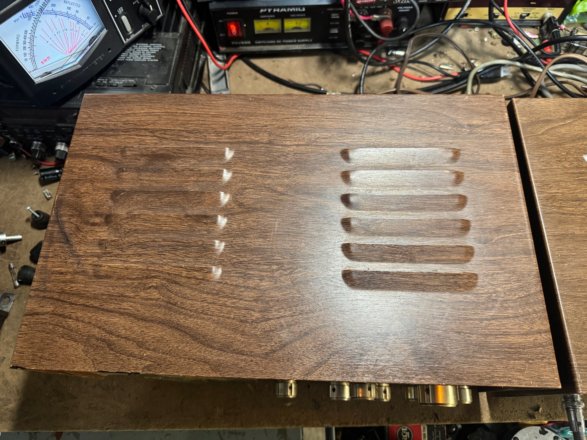 This unit performs very well and under test conditions found no issues. Output that was seen was 3 watts and swinging to 14 on AM. SSB was 15 watts. The vfo80 was very stable and performs well. Cosmetically all units are very nice with very minor marks. The Chassis does have a few pits but overall very good (see pics). The D-104 is in very nice conditon and works well. All tubes have been tested and weak ones replaced. This is a great unit and if you have been looking for a set, you wont go wrong with this one. Dont miss this one!!!!!!!!